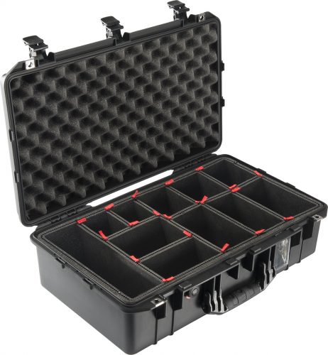 超堅固嘅扣環可以抵擋 170 公斤強大拉力,旁邊仲有可以上鎖嘅金屬孔。而且 Pelican 招牌係自動氣閥孔,亦係可以令箱子即使掉落水都唔會滲水,無論喺各種氣壓溫度情況下都可以開箱嘅重要設計。打開之後,會見到充滿保護泡綿,亦有各種相機等器材用嘅隔板。