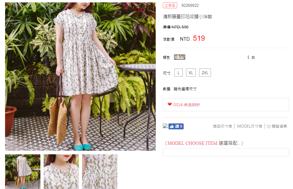 就好似呢條清新藤蔓印花收腰小洋裝,台灣官網賣緊 NTD519(約 HK$140),而香港代理就做緊 HK$294,差成百幾蚊可以買多條裙啦~
