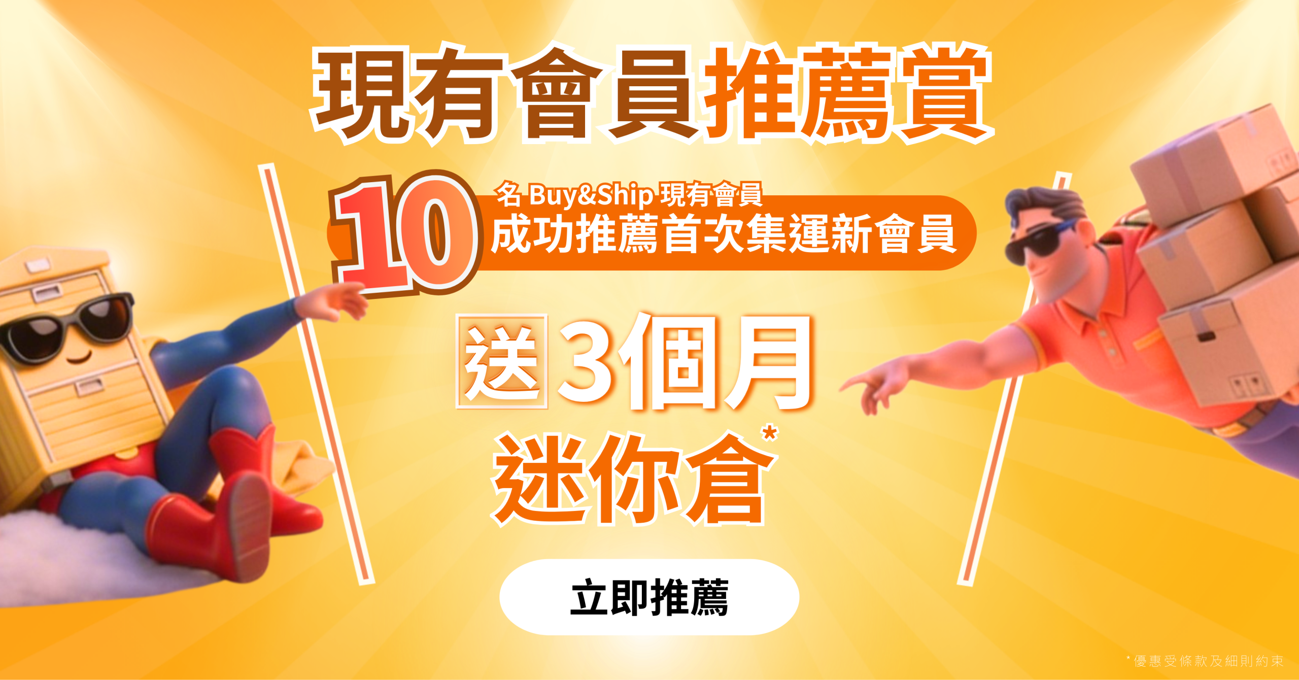 推薦愈多,解鎖獎賞🎉 活動分為兩個階段獨立計算。於每個階段內,推薦最多新會員註冊並成功完成首次集運訂單,推薦數量最多的前 5 名現有會員,可獲 3️⃣ 個月指定時昌迷你倉免費名額,名額共10名!