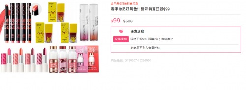 好似呢個唇膏優惠咁,一支只係 NT$99(約 HK$27),包括 Innisfree、Clio、Pony Effect、Apieu 等韓國熱門品牌,平時喺 G-Market 又點搵到呢個價錢先得架!姊妹們上去入貨啦~