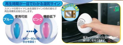 用法非常簡單,只要將佢放入衣櫃鞋櫃或要吸濕嘅地方,吸濕蛋上顏色由藍變紅,就表示已經吸滿水,然後將佢放入微波爐叮一叮就可以再用過。