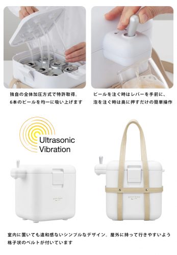 不過!日本就出咗呢個啤酒桶,可以同時放入六罐 350/500ml 嘅啤酒,接駁喉管後斟出嚟嘅啤酒就會有一層透過超聲波打出嚟嘅泡沫喺面,夠哂綿密!仲可以做到 7:3 嘅黃金比例,真係人生一大享受啊!
