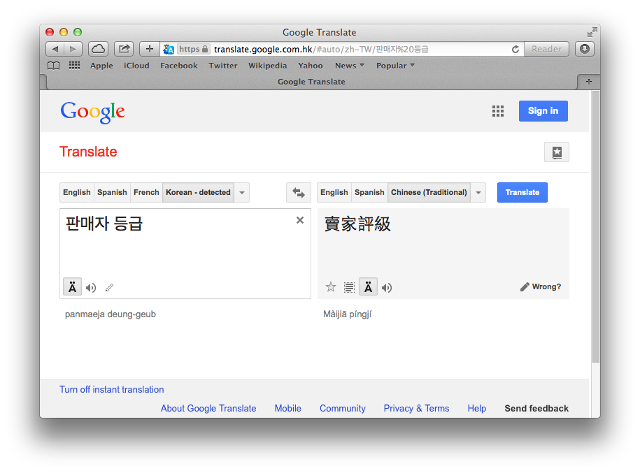 要進行翻譯,使用 Google Translate 或 Bing Translator 也可以(Bing 在某些情況下會翻譯得比 Google 的更好)。