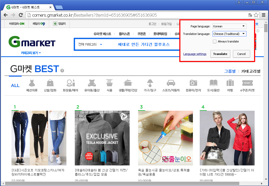 你可以設定你想要翻譯的語言。若你選擇「Always Translate」,那之後 Chrome 就不用每次問你,會自動記住網站和自行翻譯: