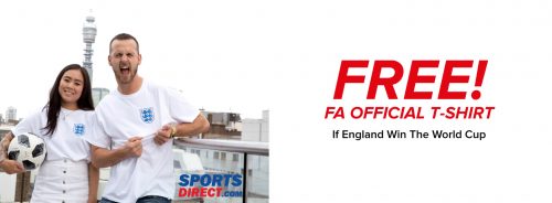 英格蘭殺入四強!唔少英國網店都推出優惠,包括英國運動網店 SportsDirect!只要今屆世界盃由英格蘭奪冠,官方就會送出英格蘭波衫版嘅 Tee 俾每位登記者。需要下載 SportsDirect 手機 App 登記,名額有限,優惠受條款約束,詳情請自行睇返 SportsDirect 官網啦!