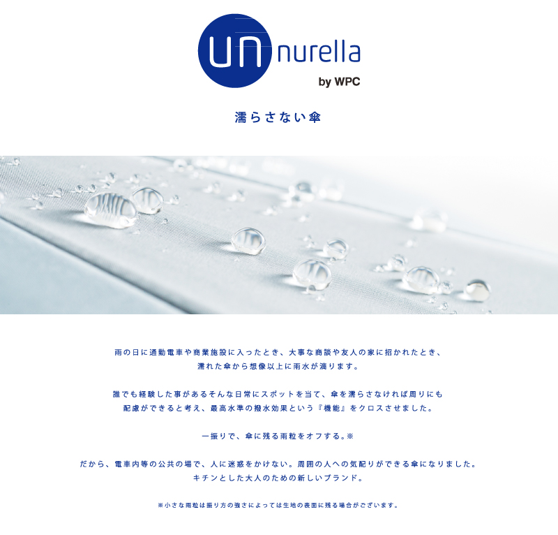 日本 Unnurella 跣水遮採用獨有物料,收遮時輕輕一抖就可以將遮上嘅雨水抖走,咁就唔洗驚收遮時會整濕自己又整濕人地,仲可以連遮袋都慳返,夠哂環保!