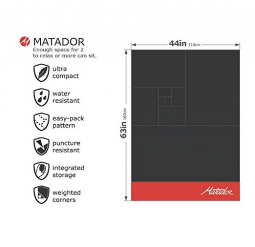 Matador 餐墊又環保又輕便,只有 3.2 ounces 重。野餐、海灘、戶外 Concert 等都岩用。打開後嘅尺寸: 110 x 160cm。