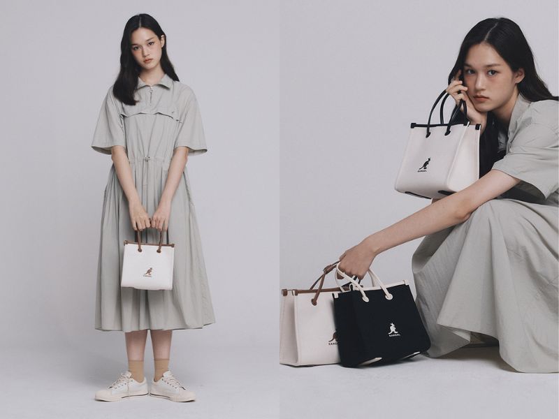 延續了KANGOL經典的帆布與皮革拼接設計,可輕鬆裝下手機、錢包和化妝品等隨身小物。這款手提袋特別適合喜歡簡約風格,或需要輕便、時尚包款的你。