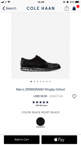 其實方法並唔複雜,只需要 Download Cole Haan 嘅手機 App 就可以解決到問題架喇!用 iPhone 的話就需要一個美國嘅 Apple ID(唔識就睇睇呢篇教學,如何免信用卡申請 Apple ID)。而 Android 用家需要連接 VPN 先可以開到美國 Google Play,詳細教學可以自行 Google 一下,但小編建議會員都係搵用 iPhone 嘅朋友幫手啦~