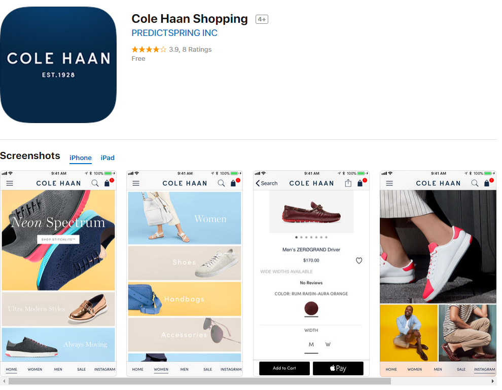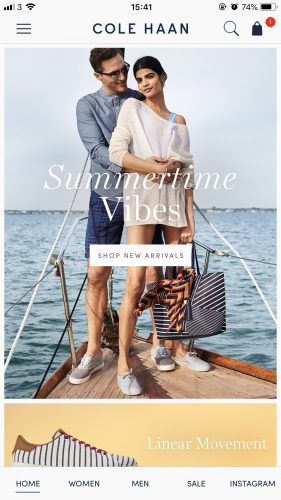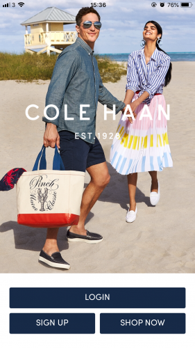 然後點選 Shop Now 即可跳入 Cole Haan 網店頁面,同網頁版大致相同,相信大家都已經十分熟悉!
