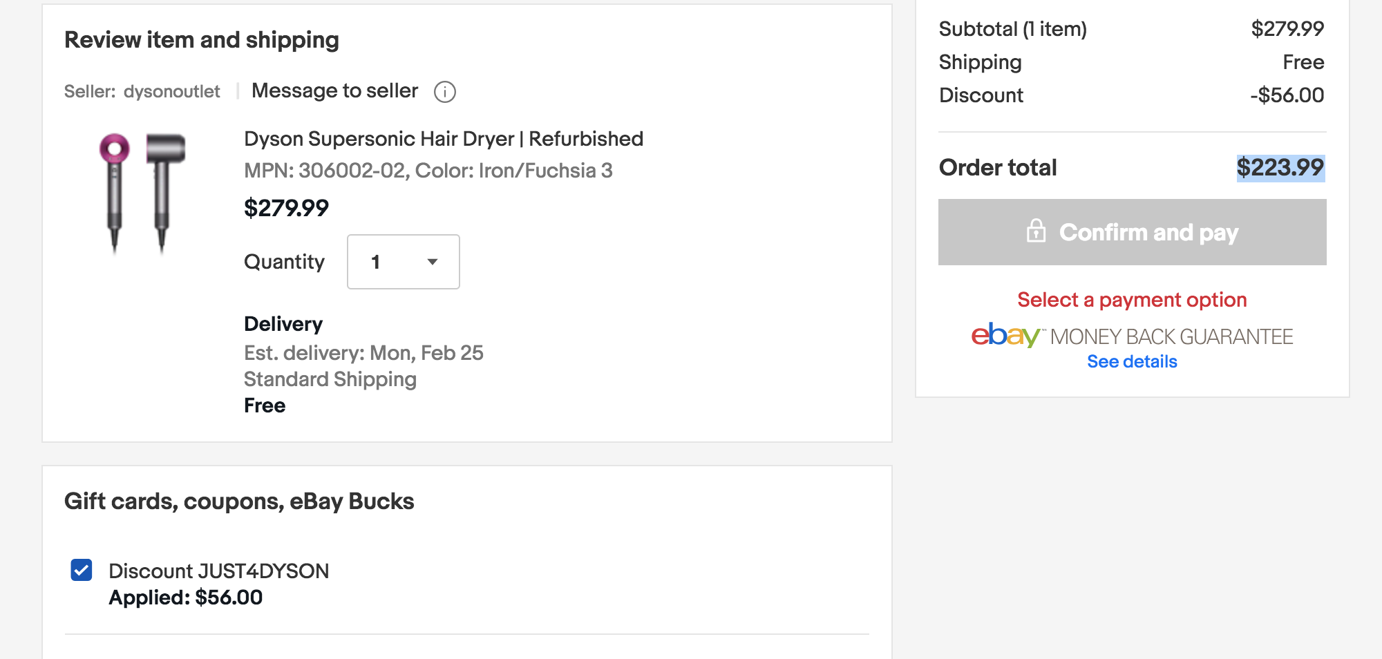 小編幫您計一計:Supersonic 風筒原廠翻新機由原價 US$399 減至 US$279.99,入埋八折 code 變成 US$223.99(約 $1747),香港正價賣緊 3千4百,足足平一半!