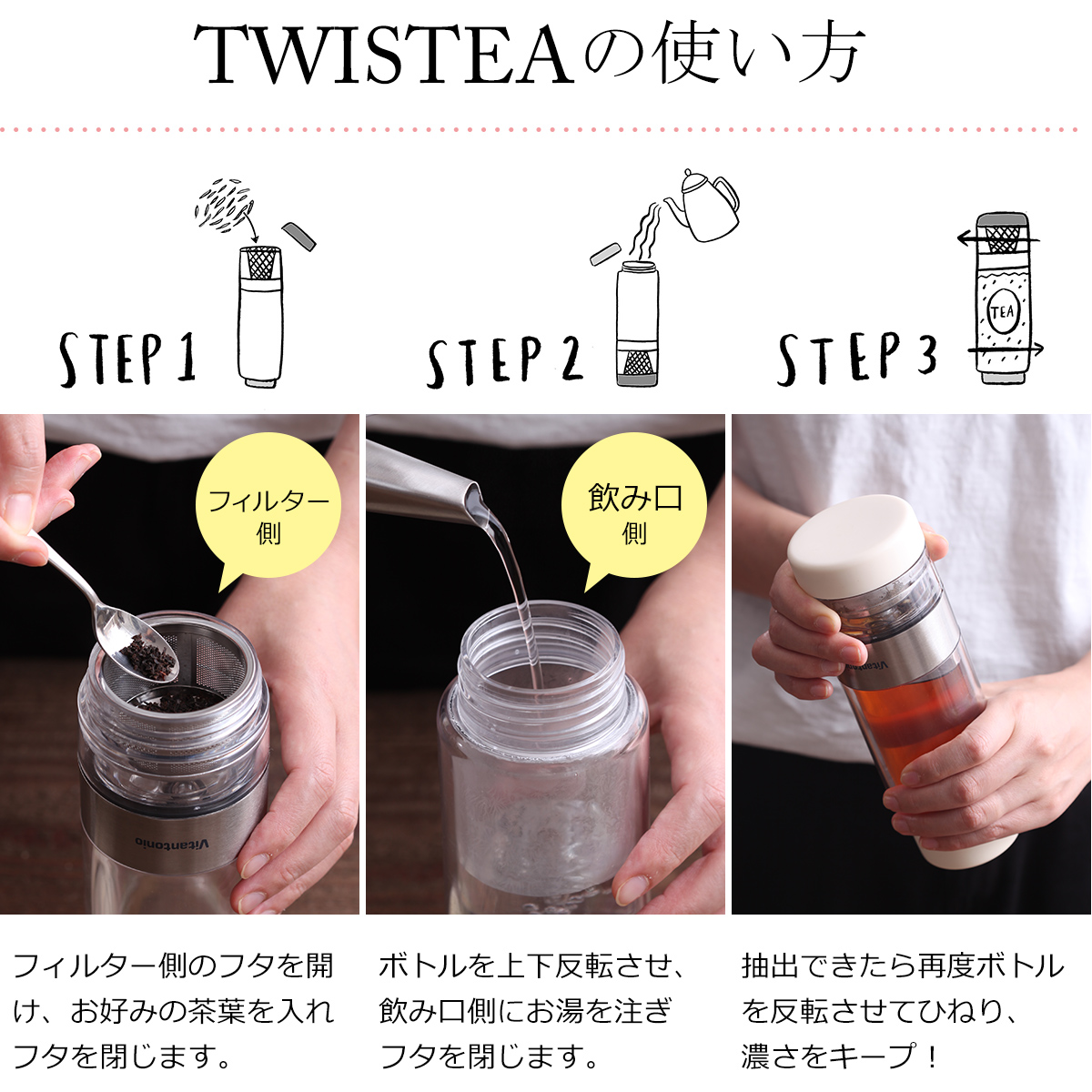 日本 Vitantonio TWISTEA 扭扭沖茶杯 16/02/2019 立即選購:http://bit.ly/2hPmGF3 Previous Next 售價 2,592円起(約$186 起) 集茶杯同茶隔於一身,下隔擺茶,上隔斟水,扭一扭就可以沖茶直接飲用。樽身採用雙層真空設計,可以耐熱至 100℃ 嘅水溫,office 個隻杯用耐咗,係時候換咗佢喇!仲有 8隻色選擇啊。 更多是日精選優惠