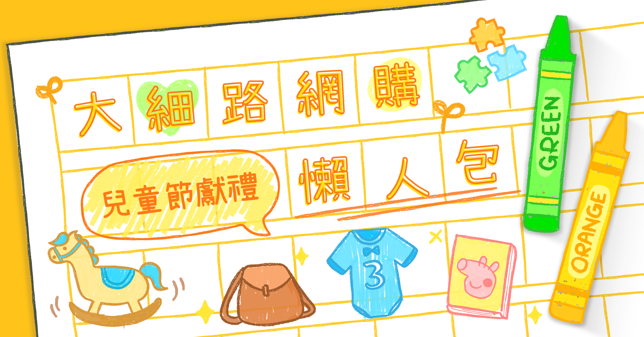 好多人都話而家嘅小朋友無童年,生活只係充斥住各種興趣班同補習班。嚟緊就係一年一度兒童節,喺時候俾佢哋暫時放低習作,好好玩返吓喇!趁住呢一日送返份禮物俾身邊嘅小朋友啦,每份禮物都係一個祝福,希望佢哋健康快樂地成長,同時亦係對佢哋嘅獎勵!