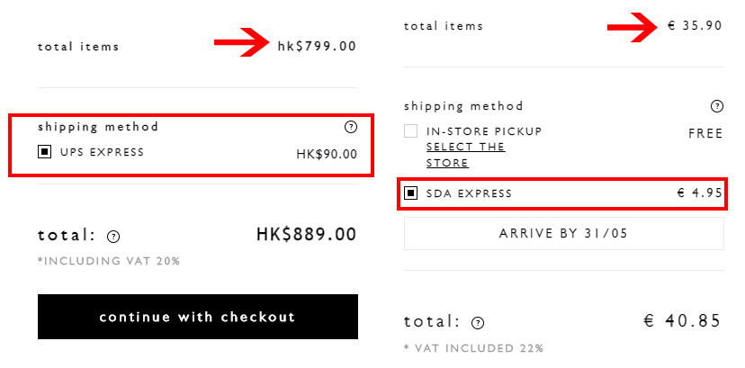 意大利啲網有得直送香港,做咩又要轉運又隔多重啫?如果有呢個諗法的話,可能你年中已經買貴咗好多喇,點解?唔講貨價本身已經平咗,就連運費上都一樣平好多!因為直送嘅運費往往比起轉運都係貴好多呀!小編唔係賣花讚花香,而係陳述緊事實咋,小編就搵咗幾間有得直送嘅網店,一齊睇睇運費差距有幾大啦!