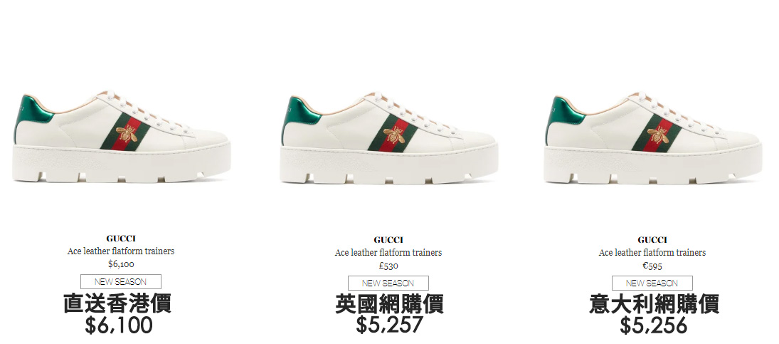 白鞋絕對係每個人嘅 must have items 之一,簡單得嚟又易襯。當中 Gucci 「小白鞋」更加係風靡中港台,雖然價錢要 4、5 千蚊對,但都一樣係有價有市,經常賣到斷哂貨架!想買得抵啲?咁就要睇吓小編為大家準備嘅價格大比拼喇!同一間 Matches Fashion 寄去唔同地區都可以差成千,今次就教大家只要識得網購並且由 Buyandship 轉運返香港,最多慳到成 HK$927!其他鞋款更加可以慳成 HK$1,119 添呀!
