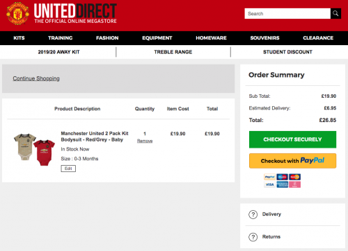新球季開鑼,第一週紅魔鬼曼聯大勝而回,睇黎球隊上下狀態大好,今季一片光明!每個球迷於季初第一件事梗係要買返件新波衫!曼聯官方購物網United Direct近日正式推出嬰孩版19-20球季球衣!作為忠誠紅魔當然要入手啦!