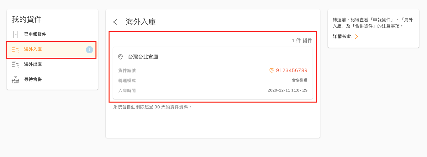Step 1. 靜候貨件轉至海外出庫