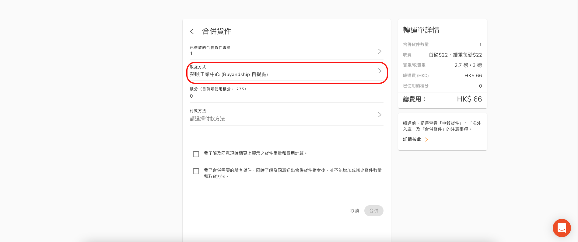 Step 2. 選取你想要合併的所有貨件