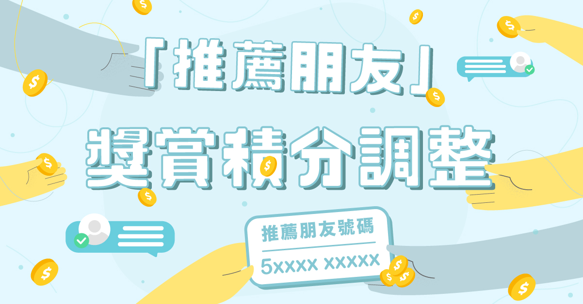 2021 年 5 月 17 日 00:00 起,「推薦朋友」計劃的獎賞積分將調整為 20 積分,以被推薦者完成首張轉運單的時間計算。