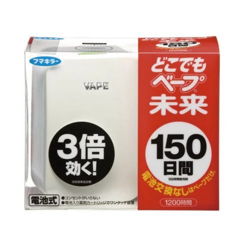日本Fumakilla公司於1963年發明全世界第一個電子驅蚊器VAPE,至今50年,其VAPE系列的驅蚊器一直是日本市場的主要品牌之一。驅蚊器不需額外駁電、超靜音設計、內置小風扇散發驅蚊功效。完全無味,對人體無任何副作用,適合有幼童及寵物環境使用。使用 1200 小時完畢後,更換驅蚊芯即可繼續使用。