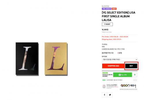 第一步:首先進入 YG SELECT官網,選擇你想預購的產品,並點擊「BUY」和「確定」進行購買。