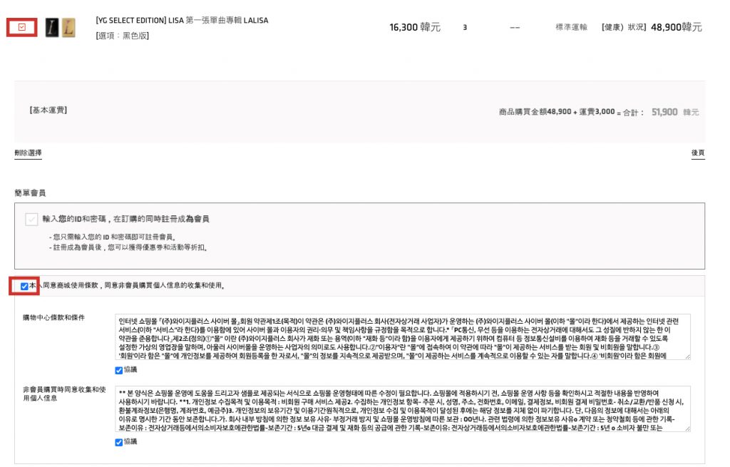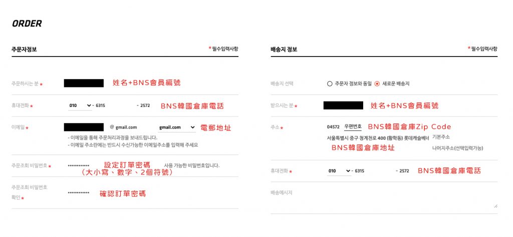第二步:選擇「비회원 주문하기」非會員結帳,填上 Buyandship 韓國倉庫地址等資料,然後勾選訂購商品及訂購條款。