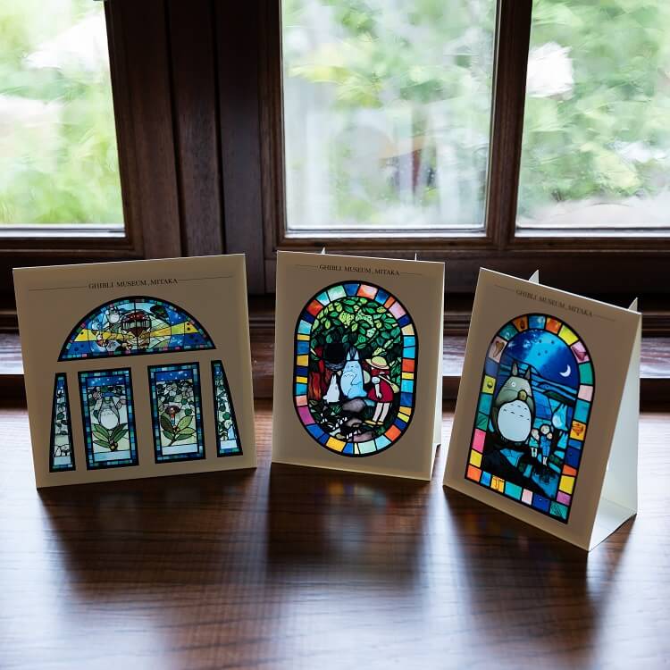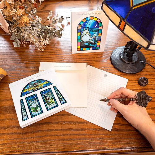 玻璃彩繪明信片使用了宮崎駿名作「龍貓」及「魔女宅急便」作為主題,再結合了傳統玻璃彩繪元素,令明信片增添了高貴雅典的感覺。更附有紙窗戶可以手動打開或關掉,令明信片增添了立體感與玩味。