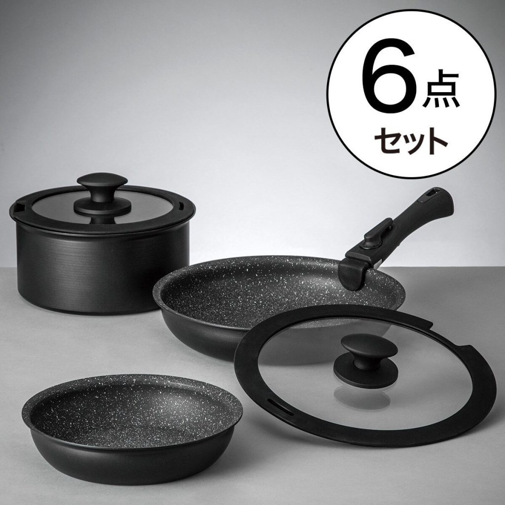 可拆卸手柄的超輕量鍋/煎鍋 6 件裝