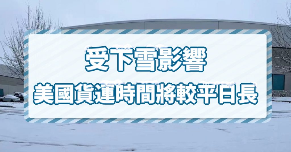 受下雪影響美國貨運時間將較平日長 29/12/2021 美國波特蘭受下雪天氣影響,美國貨運整體運輸時間將較平日長。 當地氣象局預測,波特蘭未來數天仍會持續下雪。由於路面積雪濕滑及能見度低,對波特蘭的物流運輸造成影響,快遞公司運送貨件至倉庫的所需時間將較平日長,貨件從美國倉庫出庫至香港倉庫之物流運送時間亦將有所延長。 不便之處,敬請原諒。