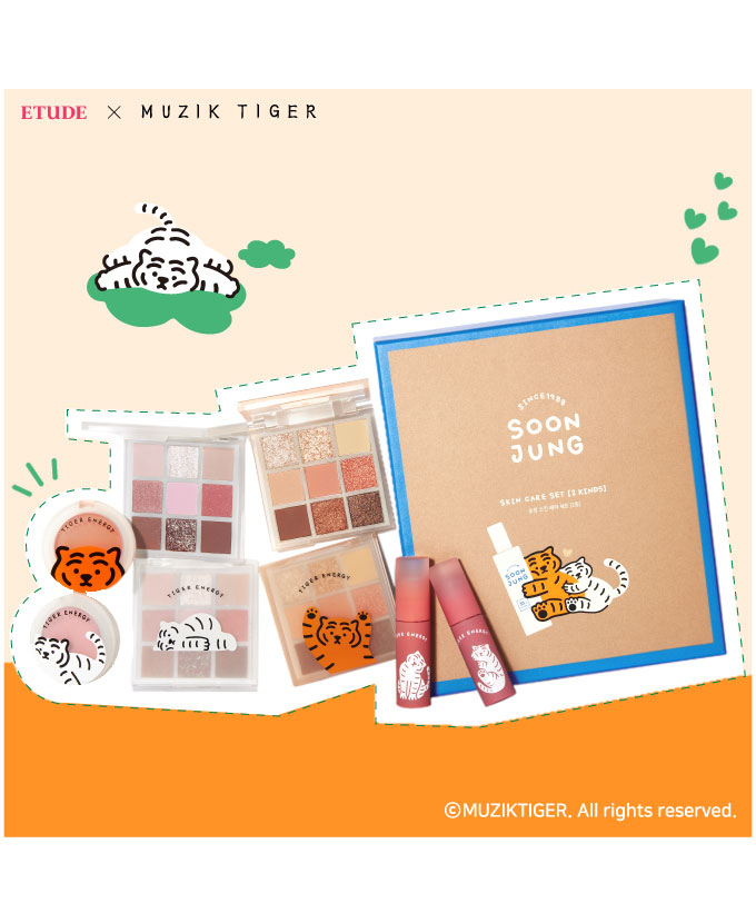 2022 虎年 ETUDE 聯乘 MUZIK TIGER,韓國知名文創插畫品牌推出限量彩妝系列。購買限量組合更會贈送 MUZIK TIGER 小禮物。