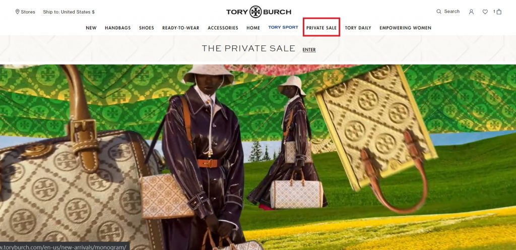 Step 3:進入 Tory Burch 美國官網,點擊進入「SALE」專區。