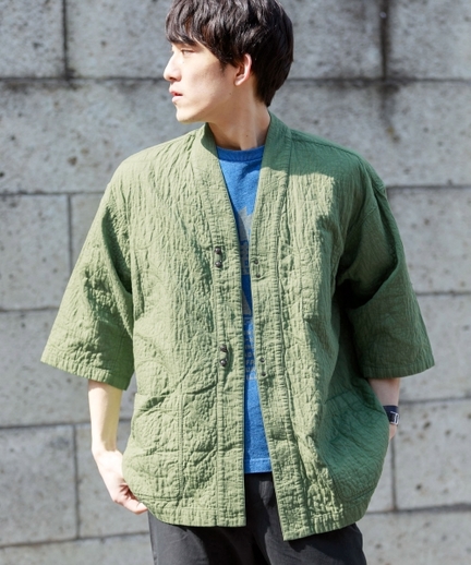 帶有和服感的寬鬆版型外套,穿著後即變日系男子!採用透氣面料製成,不會有侷促感,另有黑色可選。