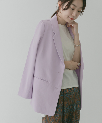 一年四季也能穿的西裝外套,用上近年十分流行的芋頭紫色,搭配印花洋裝或是短 T 長褲也很好看~