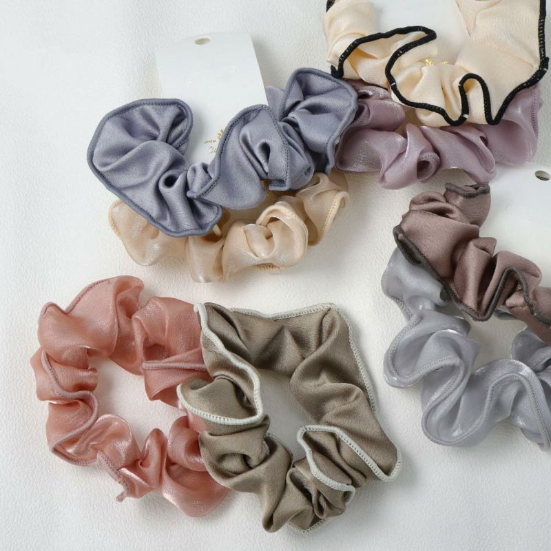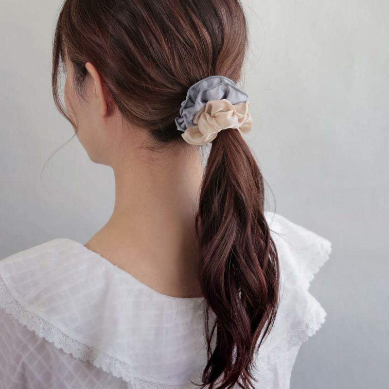 一套兩色的大腸髮圈使用淡色調配色和光澤綢緞材質,疊加綁在頭髮梢上盡顯女性柔美。披髮時套在手腕上還能變成好看的飾品,一舉兩用!