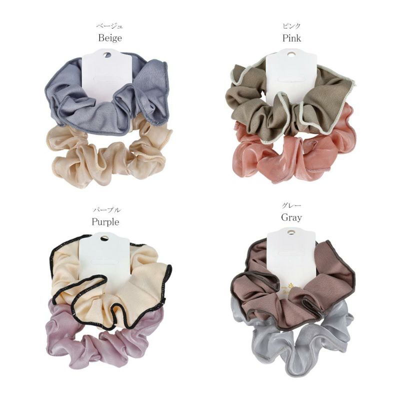 シュシュ シャイニー ニュアンスカラー 2色 2個セット ヘアゴム ヘアポニー