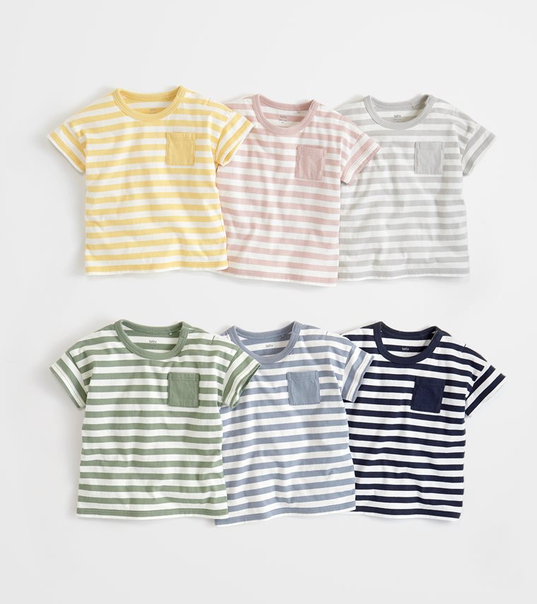 多種顏色配上簡約百搭的間條紋,再加上胸前的小口袋設計,不失時尚感之餘帶來充滿活力的感覺,是孩子衣櫃必有的萬能T恤,建議選購~