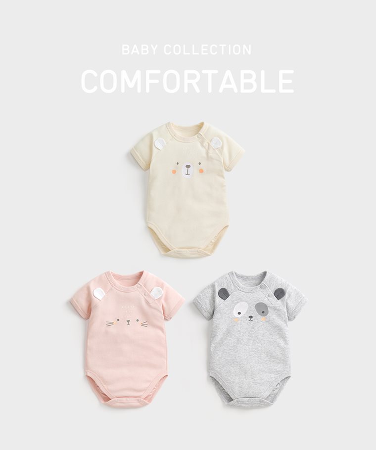 以淡色系配搭動物的圖案,加上一雙動物耳朵,既低調又可愛,適合日常身著;在肩膊前及胯下均設有鈕扣,方便穿脫~
