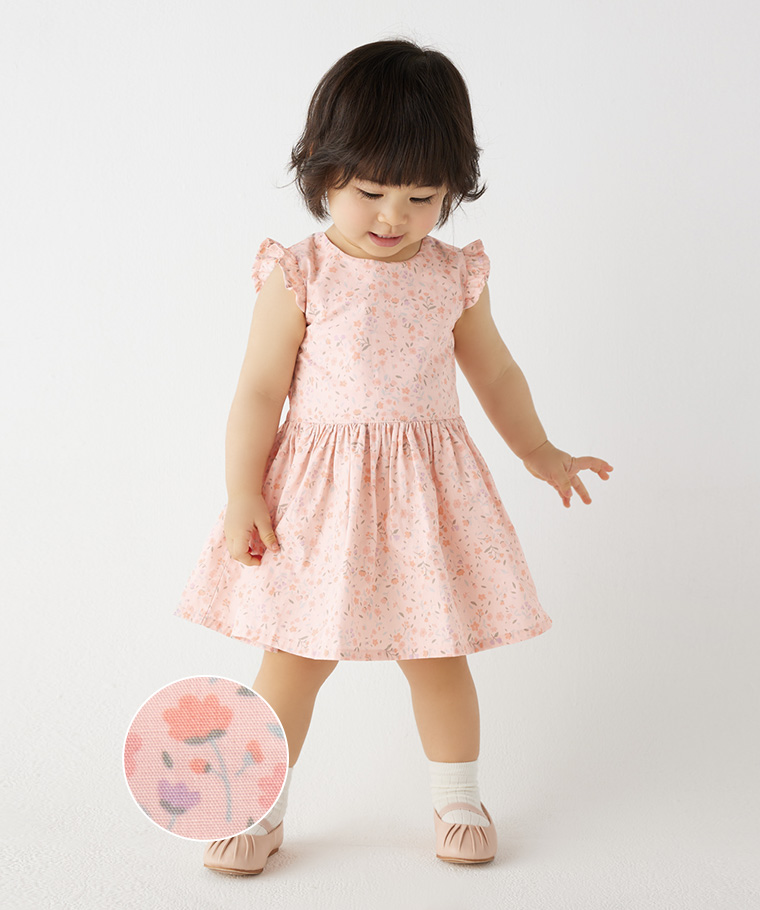 洋裝印有漂亮的碎花圖案,而且衣袖選用荷葉邊,腰身亦設有皺褶設計,不管紅藍白那種顏色都能突顯女孩子的活潑可愛,十分推介~