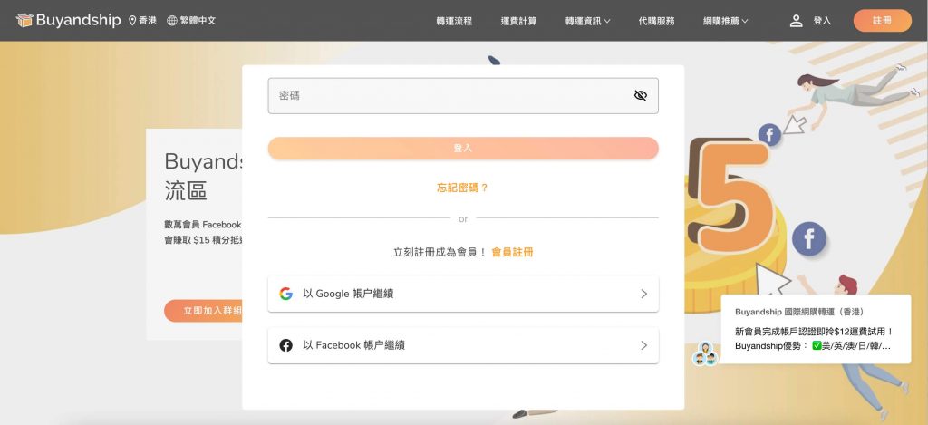Step 1:前往 Buy&Ship 網站,登入或註冊會員。