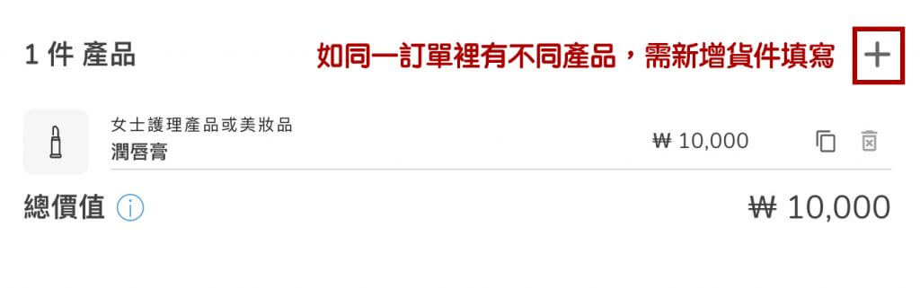 一張代購訂單內,最多可加入同一個購物網站的 10 種商品。(若商品來自不同網站,您需要提交新的代購訂單)