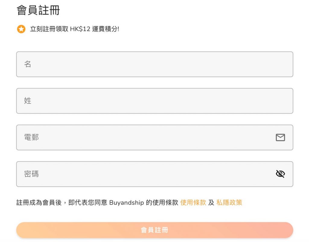 前往 Buy&Ship 網站,點擊右上角完成「註冊」會員步驟。