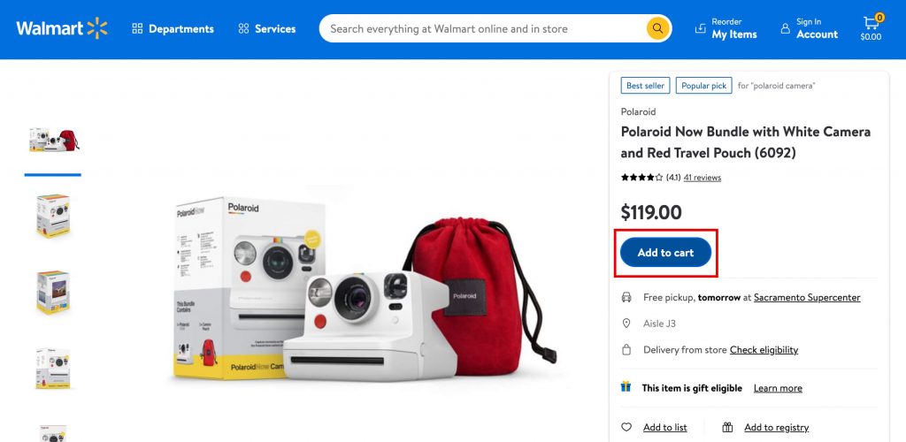 前往 Walmart 網站,選購喜歡的商品並加入購物車。