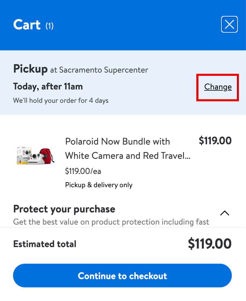 完成註冊後,再次點擊購物車。點擊「Change」將取件方式轉換成郵寄。點擊「Delivery from store」及「Add address」。