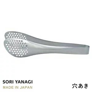 此款不銹鋼夾以特殊機器將一整片金屬直接切割而成,其微微向內的弧形讓手掌較小的用家也能輕鬆取握;末端圓弧的向下傾斜角度與雙邊上縝密的鑿孔設計,方便夾取任何食材,並過濾出多餘水份。