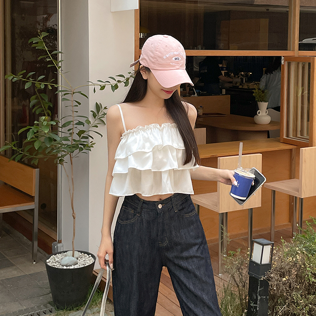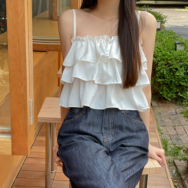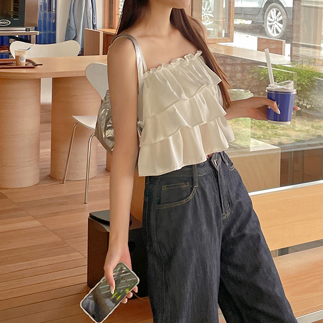 充滿仙氣的一款小背心,荷葉邊皺褶設計,涼爽又小清新,除了象牙白還有黑色可選~
