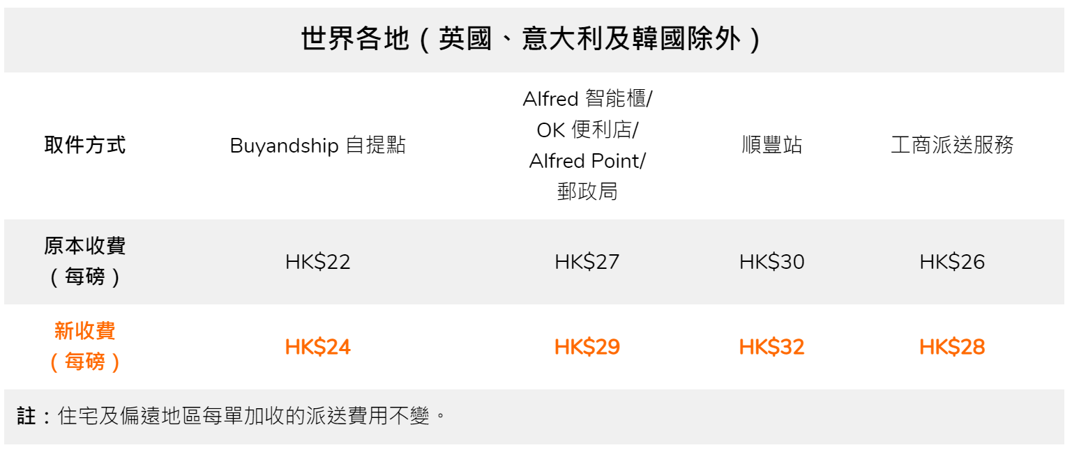 我們會定期檢視營運成本及服務收費,致力為各位會員提供更佳的海外轉運服務。