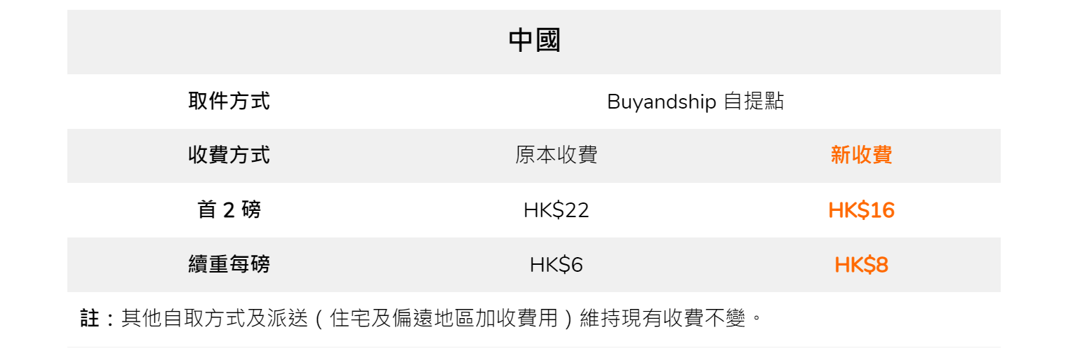 請留意在新收費生效前(即 2022 年 8 月 31 日 23:59 或之前)所建立的轉運單,將會按照原本收費計價。有關各個倉庫及取件方式的收費詳情,請查閱「運費計算」。