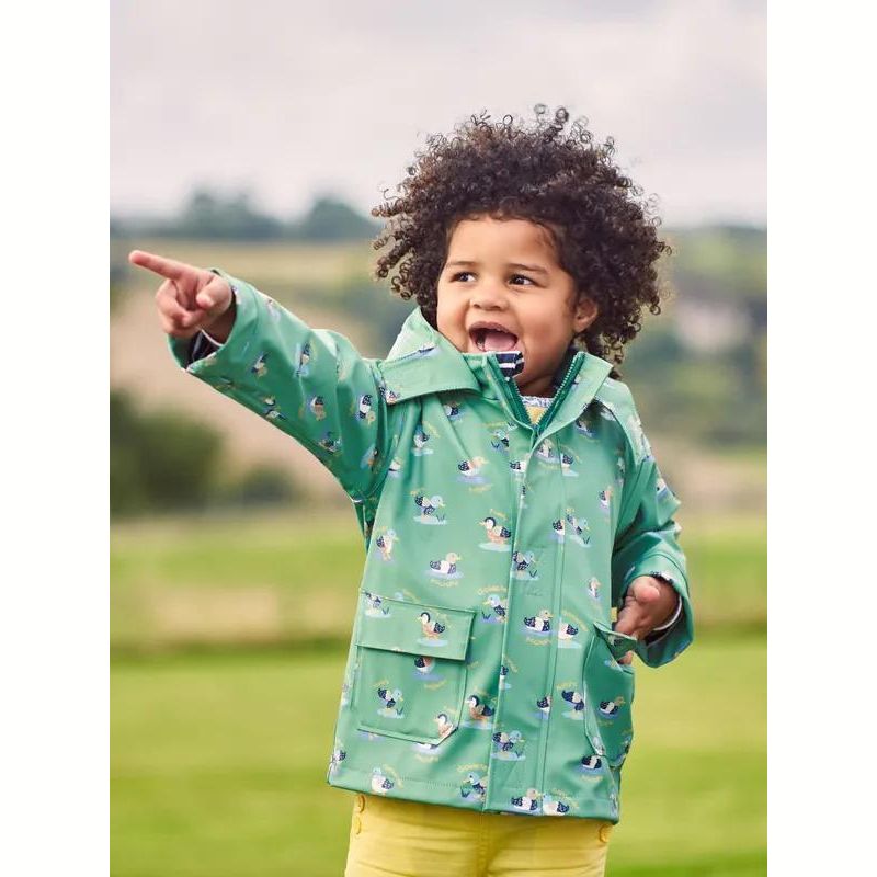 這款連帽防水外套為鴨子印花款式,外型可愛趣緻,專為外出時不能預計的天氣狀況而設,能有效防風防水,還可為孩子在颳風時帶來溫暖,為衣櫃必備單品之一!