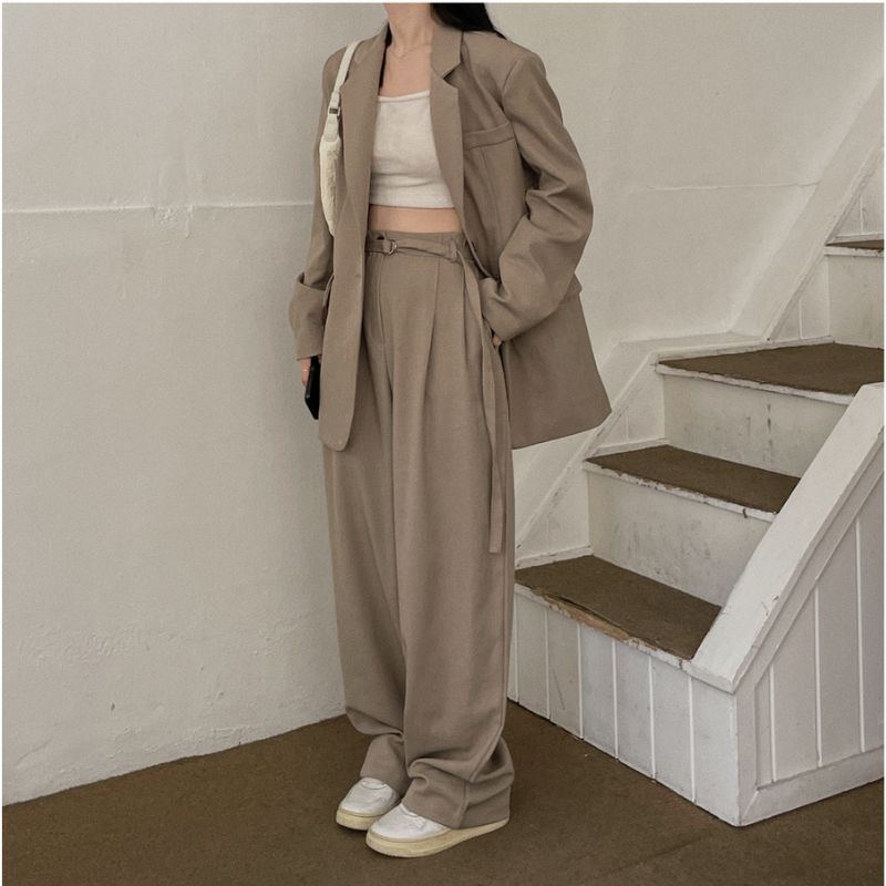 這款寬管落地長褲外型時尚簡約,同時帶有知性成熟美,配合小背心或同色西裝外套穿著會令整體感覺更一致,展現中性品味,腰間亦設有可調較腰帶,方便更貼合腰線更美~