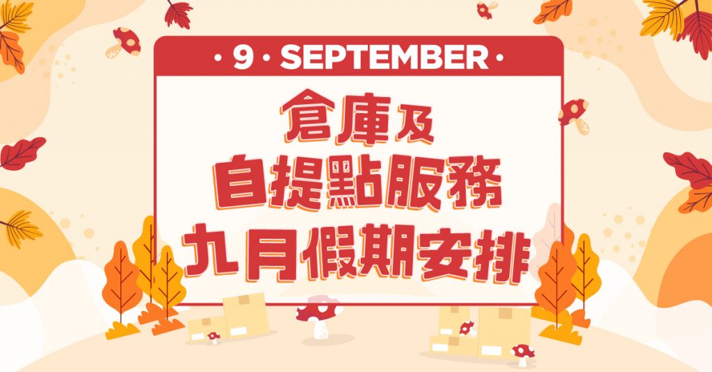 除非另行公佈,Buyandship 自提點亦將於 9 月 12 日(一)公眾假期休息,敬請留意。